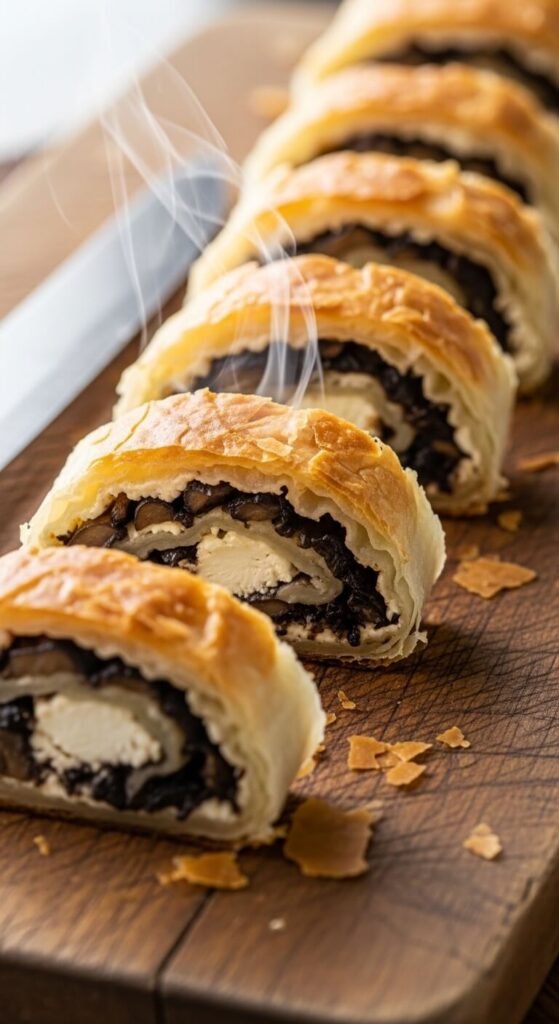 Earthy mushrooms and tangy goat cheese are a natural pairing. Sauté diced cremini mushrooms with garlic and thyme until all the moisture cooks off. Let them cool, then mix with crumbled goat cheese. Lay out a strip of phyllo, brush with butter, add filling, and roll tightly like a cigar. Bake until golden and crisp. Slice on the diagonal before serving to show off the filling. Use baby bella mushrooms instead of cremini if they’re on sale — the flavor is nearly identical.