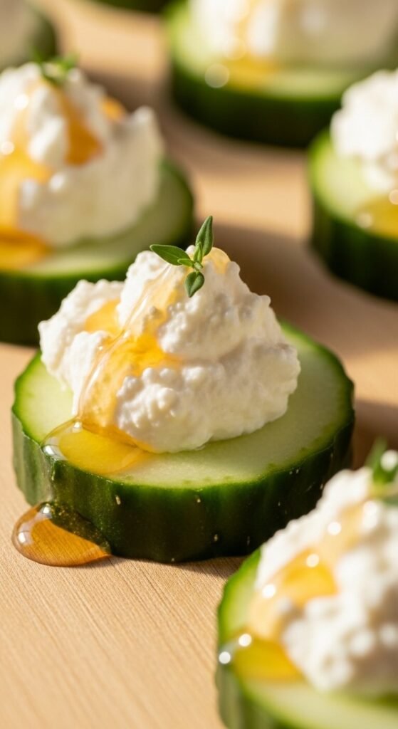 9. Cucumber Bites with Whipped Ricotta and Honey
