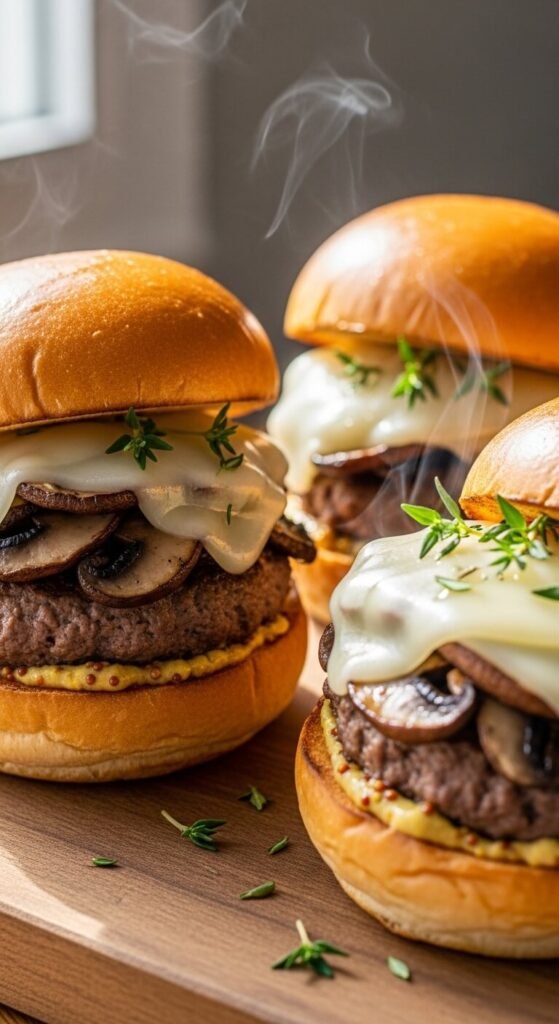 A vegetarian slider that even meat-eaters will choose first. Sauté cremini or portobello mushrooms in butter with garlic until deeply golden. Season generously with salt, pepper, and a splash of Worcestershire sauce. Pile them onto a toasted bun, add a slice of Swiss cheese, and broil until melted. A smear of Dijon mustard ties it all together. Mushrooms are inexpensive and satisfying enough to stand on their own. This is one of the easiest sliders to prep ahead — just reheat the mushrooms.
