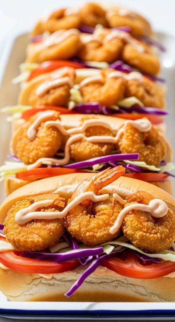 Bring New Orleans energy to your table. Lightly breaded and pan-fried shrimp are the star here. Season shrimp with Cajun spice, dredge in flour, and cook in a little oil until pink and crispy. Tuck them into mini hoagie rolls with shredded cabbage, sliced tomato, and remoulade sauce (mayo + hot sauce + pickle relish). These come together in under 20 minutes. Frozen shrimp works perfectly and keeps the cost low. Great for summer gatherings or a fun Friday night dinner.