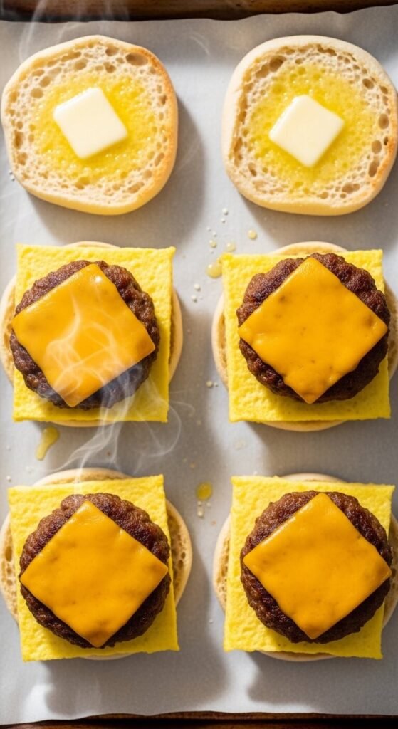 Breakfast sliders are the answer to hectic mornings or brunch parties. Bake scrambled eggs in a 9×13 pan so they come out in neat squares — perfect for sliders. Add a sausage patty and a slice of cheddar on an English muffin or Hawaiian roll. Wrap the whole batch in foil and bake until the cheese melts. You can assemble these the night before and refrigerate. Morning tip: make a dozen at once and reheat throughout the week. Cheaper and better than any drive-through option.