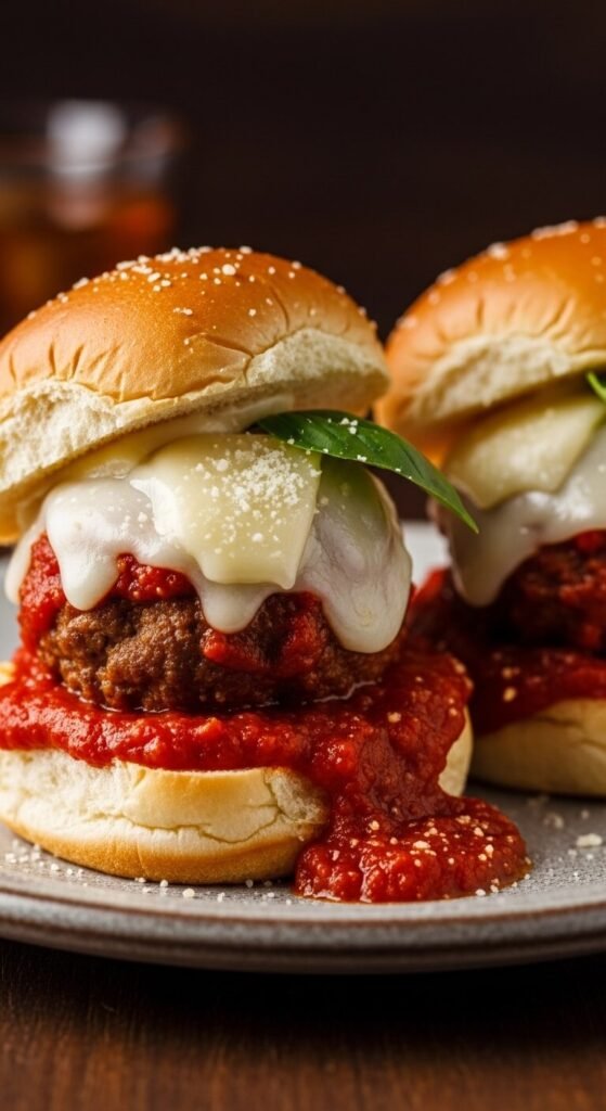 Like a meatball sub — just more manageable. Use homemade or store-bought frozen meatballs simmered in marinara sauce until heated through. Place one or two meatballs in a soft roll, spoon extra sauce over them, and top with a slice of provolone. Broil for a couple minutes until the cheese bubbles. A sprinkle of Parmesan and a basil leaf elevates the whole thing. Budget tip: frozen meatballs from warehouse stores are excellent quality for the price. These disappear faster than almost anything else on this list.