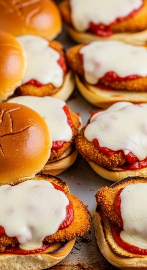 All the satisfaction of chicken parm without the fork and knife. Pound chicken breasts thin, coat in seasoned breadcrumbs, and pan-fry until golden. Place on a slider bun, top with marinara and mozzarella, and broil until melted. Using thin cutlets is key — they cook fast and fit the bun perfectly. You can also use breaded frozen chicken patties on busy nights for a five-minute shortcut. The quality barely drops. Serve these with a small side salad and dinner is done in under 30 minutes.