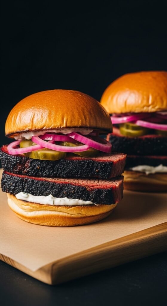 This is the slider that makes people ask what restaurant catered your party. Slow-cooked brisket — either smoked, braised, or bought from a BBQ joint — sliced thin and piled on a brioche bun. The key toppings are quick pickled onions (red onion in vinegar and sugar for 30 minutes) and a dollop of creamy horseradish sauce. The acid from the pickled onions cuts through the richness of the brisket perfectly. Budget tip: buy brisket in bulk from a BBQ spot and build sliders at home for a fraction of the restaurant price.