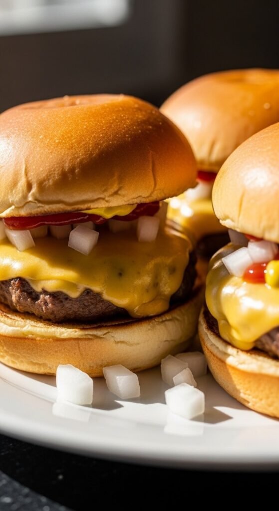 The smash burger technique is a game-changer for sliders. Ball up a small portion of 80/20 beef, place it on a screaming hot cast iron skillet, and smash it flat immediately with a spatula. The thin patty creates maximum caramelization on the surface. Add a slice of American cheese while still in the pan. Serve on a toasted sesame bun with mustard and thinly sliced white onion. The crispy, craggy edges are what make these so addictive. No special equipment needed — just heat and confidence.