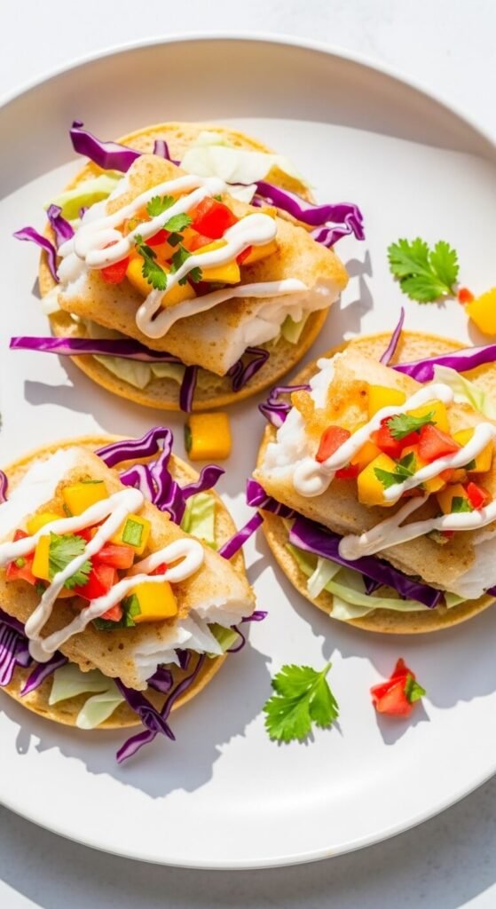 Taco meets slider — and the result is outstanding. Use battered white fish (tilapia, cod, or pollock work great) either pan-fried or baked. Place on a small soft bun or even a thick corn tortilla folded like a slider. Top with shredded cabbage, a spoonful of mango salsa, and chipotle crema (sour cream + chipotle in adobo sauce). The contrast of crispy fish, fresh fruit, and smoky cream is everything. Frozen fish fillets cut into slider-sized pieces keep the cost very low.