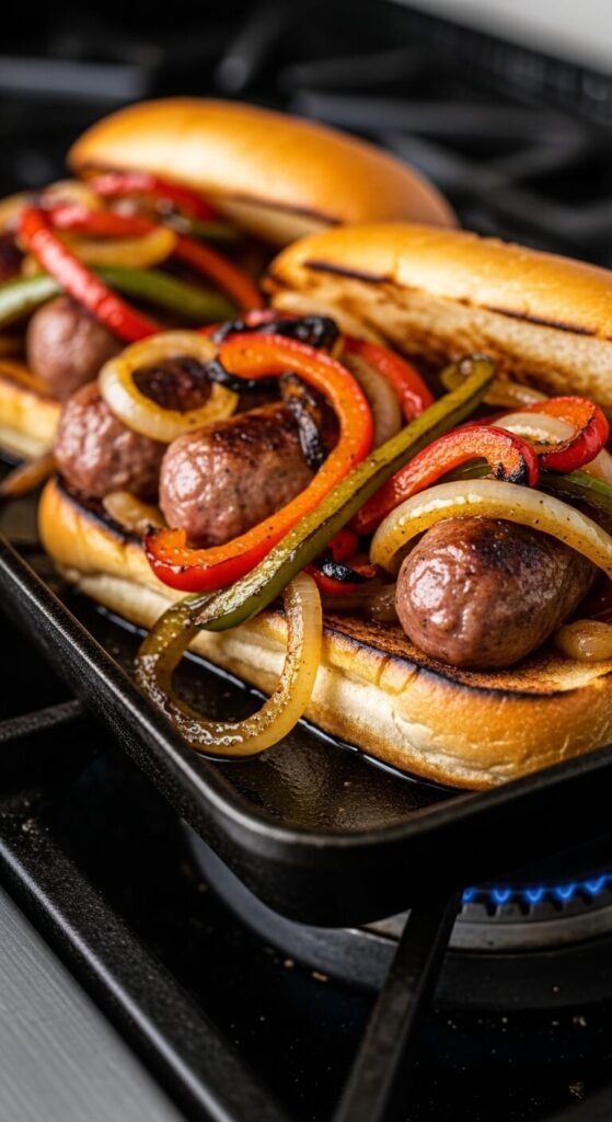 Bold, satisfying, and made in one pan. Slice Italian sausage links into coins and cook in a skillet with sliced bell peppers and onions. Let everything caramelize slowly until soft and deeply flavored. Pile onto hoagie-style rolls and serve as-is. No extra sauce needed — the cooking juices do all the work. Spicy or mild sausage both work. This is a great slider to make for a large group because you can keep the whole batch warm in a slow cooker on the lowest setting. Affordable and filling.