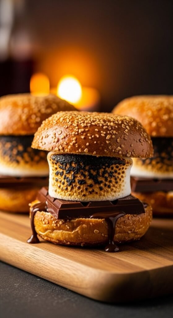 End the slider spread on a sweet note. Use small brioche buns or thick graham cracker rounds as the base. Place a square of dark chocolate on the bottom half. Toast a marshmallow over a flame or under the broiler until golden with charred spots. Sandwich it together while warm. The chocolate melts slightly from the heat of the marshmallow. Serve immediately. This is fast, fun, and universally loved. Kids can help toast the marshmallows safely under a broiler with supervision. The perfect ending to any slider night.