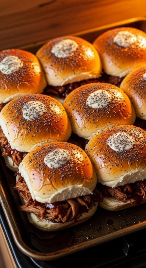 These are dangerously good. Hawaiian rolls add a subtle sweetness that pairs perfectly with smoky BBQ pulled pork. Use store-bought rotisserie pork or slow-cooker pulled pork made ahead of time. Layer on the pork, add coleslaw for crunch, and brush the tops with melted butter and a pinch of garlic powder. Bake the whole tray covered in foil for 10 minutes. The rolls get warm and slightly steamy inside. Budget tip: a pork shoulder feeds a large crowd for very little money.