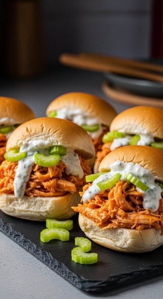 Spicy, saucy, and completely addictive. Shred rotisserie chicken and toss it in your favorite hot sauce with a little butter. Pile it onto soft dinner rolls with a drizzle of blue cheese or ranch dressing. Add thinly sliced celery for crunch. These take less than 15 minutes if you use pre-cooked chicken. Double the hot sauce if you like things fiery. Great for game day, parties, or a weeknight dinner that actually excites everyone at the table.