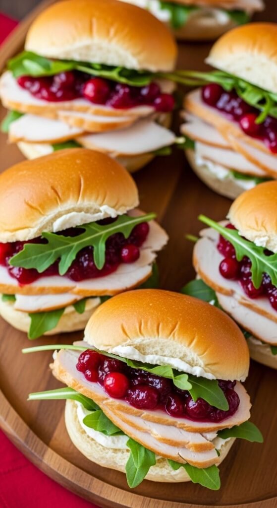 These are perfect for using up Thanksgiving leftovers — or for making any day feel a little festive. Layer sliced turkey on a soft dinner roll with a generous spoonful of cranberry sauce. Add a thin layer of cream cheese or brie for richness. A handful of arugula adds a peppery bite. These take under 10 minutes to assemble. The sweet-savory combination is something people always come back for seconds of. Great for holiday parties, potlucks, or lunch boxes.