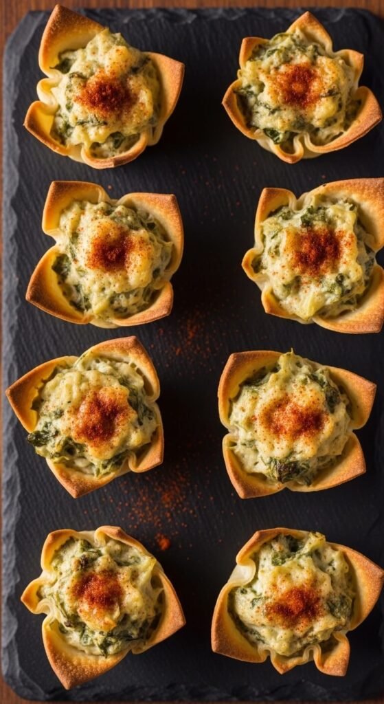 18. Spinach Artichoke Dip in Wonton Cups