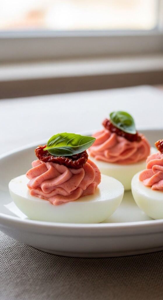 7. Sun-Dried Tomato and Basil Deviled Eggs