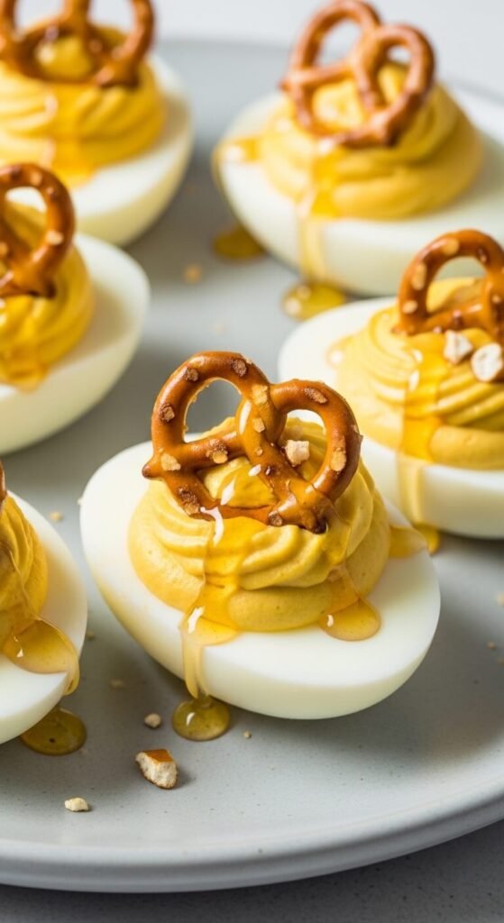 21. Honey Mustard and Pretzel Deviled Eggs