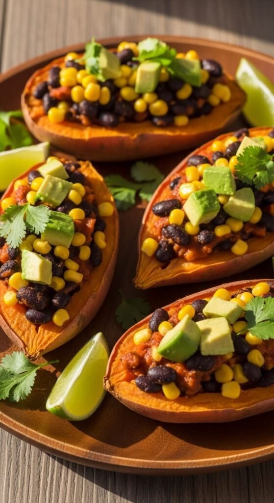 Bake sweet potatoes whole, then halve and scoop out centers.