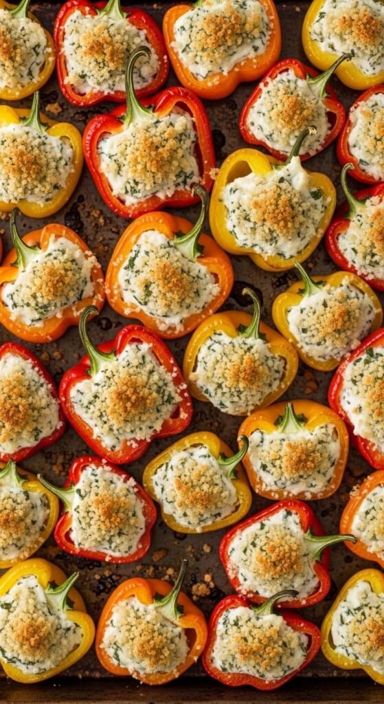 Fill with cream cheese mixed with cheddar and garlic powder. Bake at 400°F for 20 minutes. The cheese gets melty and peppers soften perfectly.
