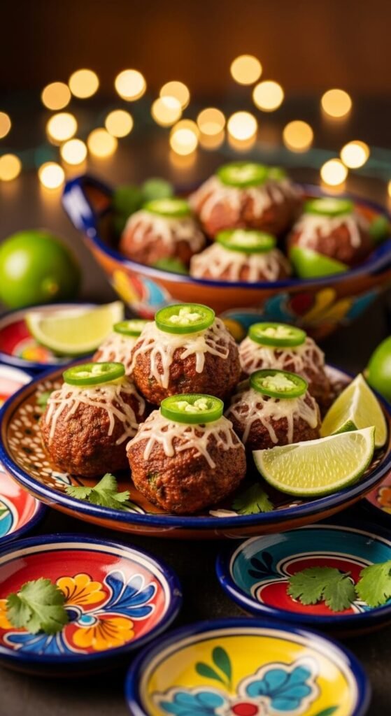 The chips add texture and corn flavor. A packet of seasoning costs $1 and flavors three dozen meatballs. Serve with salsa, guacamole, and sour cream on the side. This setup lets guests customize their bites.