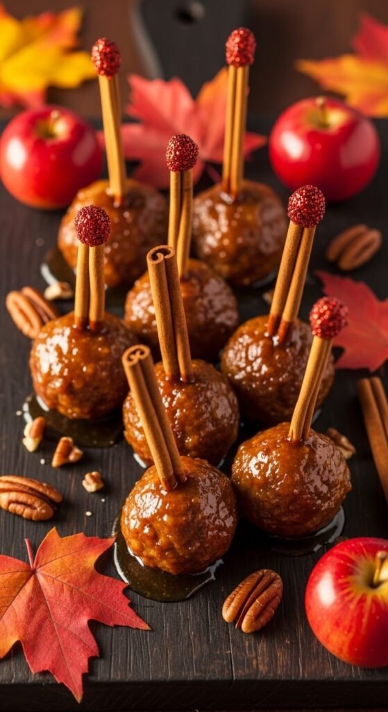 Fall gatherings need this seasonal favorite. Simmer meatballs in apple cider with brown sugar and cinnamon. The cider reduces into a sticky glaze.