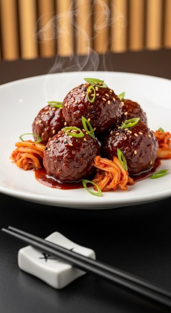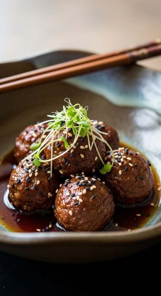 Gochujang paste brings umami and heat together. Mix the paste with soy sauce, garlic, and sesame oil for your glaze. Brush on meatballs during the last 5 minutes of baking.
