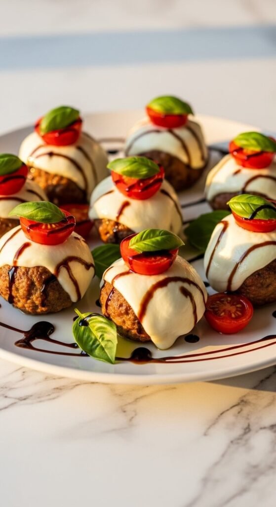 The classic salad becomes a hot appetizer. Top baked meatballs with fresh mozzarella slices and halved cherry tomatoes. Broil until cheese melts.