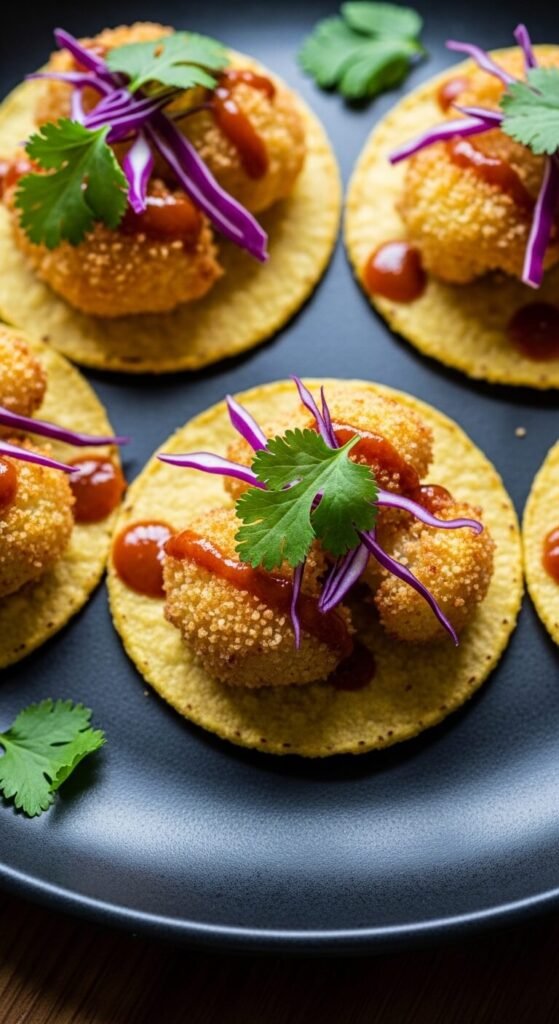 Cauliflower gets a bad reputation. Done right, it’s bold and satisfying. Coat cauliflower florets in panko, smoked paprika, garlic powder, and oil. Roast at 425°F until golden and crispy. Pile onto small corn tortilla rounds. Drizzle with chipotle sauce and add thin strips of purple cabbage for crunch. These are completely plant-based and budget-friendly. A single head of cauliflower makes enough to fill a large serving platter. Even non-vegetarians come back for seconds.