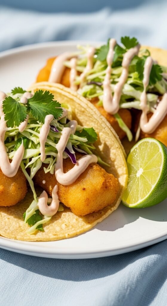 Baja fish tacos in mini form are a true party showstopper. Cut white fish fillets (tilapia or cod works great) into small strips. Dip in a simple beer batter (flour, beer, salt, garlic powder) and fry until golden. Place in small corn tortillas. Top with a quick cabbage slaw — shredded cabbage, mayo, lime, and a pinch of salt. Drizzle with chipotle crema. Tilapia is one of the most affordable fish options. Frozen fillets thaw in 20 minutes and fry beautifully.