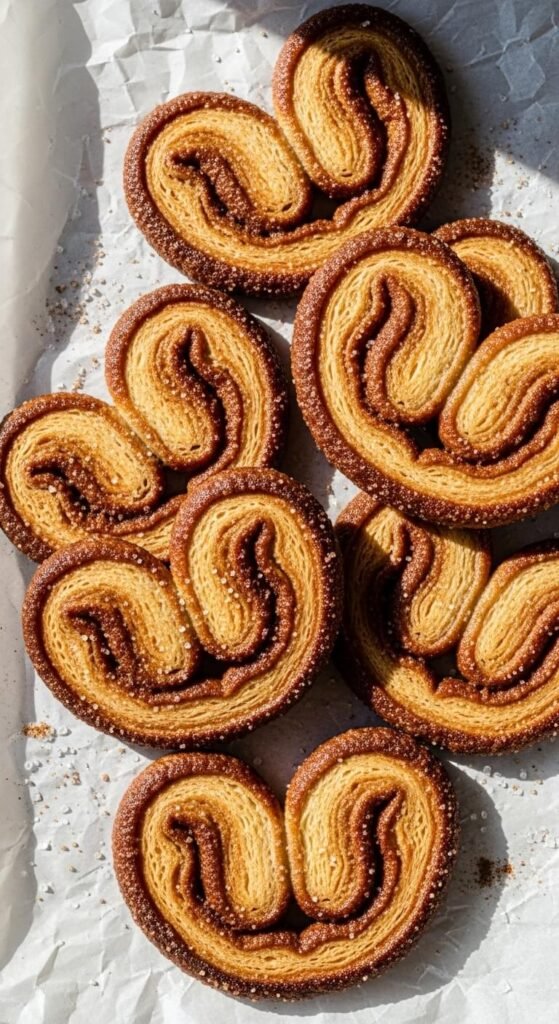 Mix cinnamon and sugar together. Sprinkle generously on pastry sheet. Roll both long edges to center to create classic palmier shape.