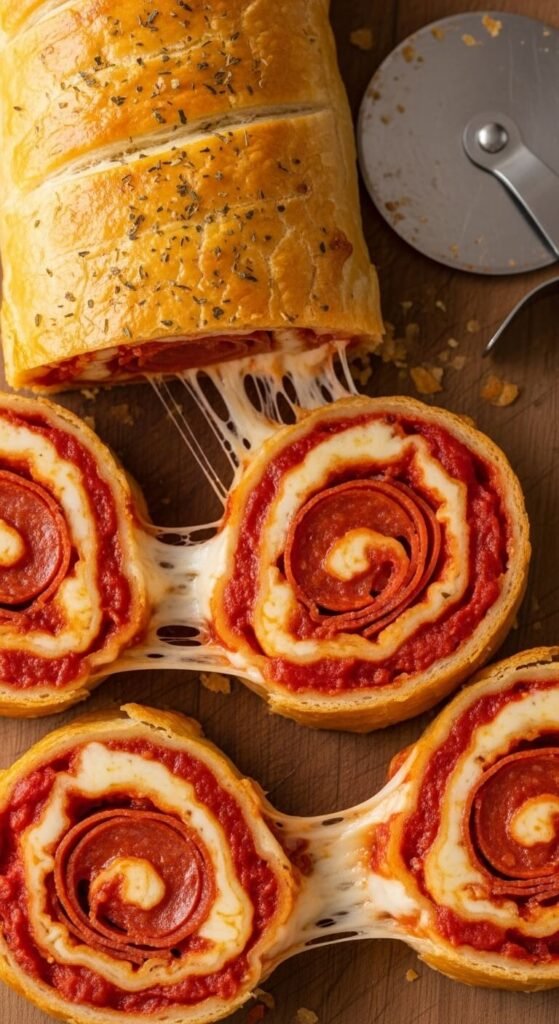 Bake seam-side down for 15 minutes. Add Italian seasoning to marinara for extra flavor. Use whatever pizza toppings you prefer. Kids request these constantly. They’re cheaper and tastier than frozen pizza rolls. Serve with extra marinara for dipping.