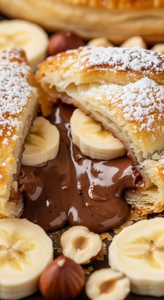 Brush with egg wash and bake for 12 minutes. Dust with powdered sugar before serving. Use ripe bananas for sweetness. Generic chocolate hazelnut spread costs half as much. These work for dessert or breakfast. Serve warm while chocolate is melty.