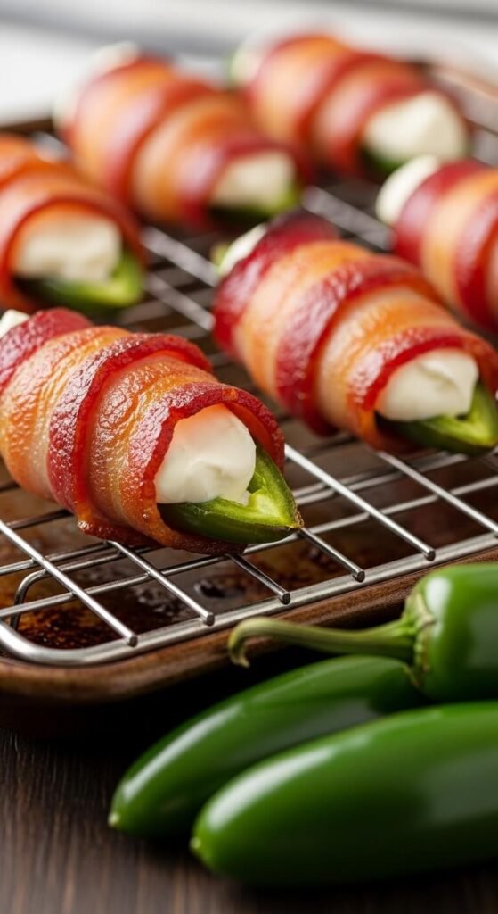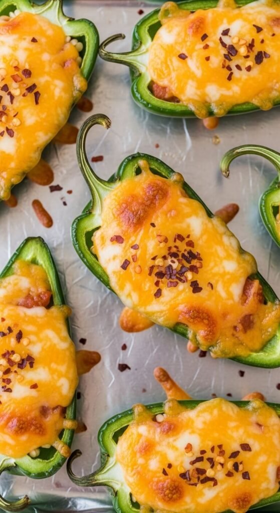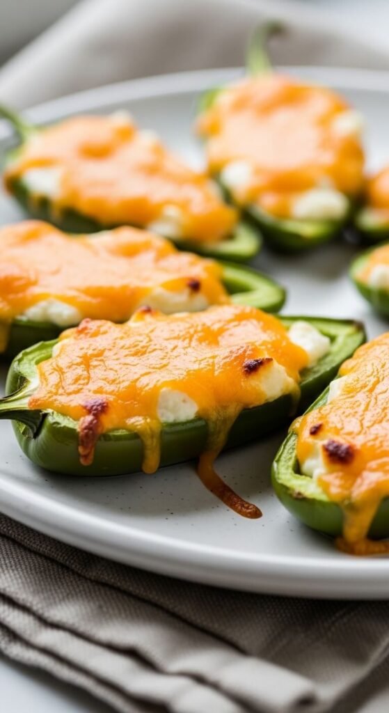This is where it all starts. Halved jalapeños filled with softened cream cheese, topped with breadcrumbs, and baked until golden. Simple. Affordable. Always a hit. Use store-brand cream cheese to keep costs low. Mix in a pinch of garlic powder for extra flavor. Bake at 400°F for about 15 minutes. The skin softens just enough while the filling stays rich and creamy. These are the poppers everyone knows and loves — and there’s a good reason for that.