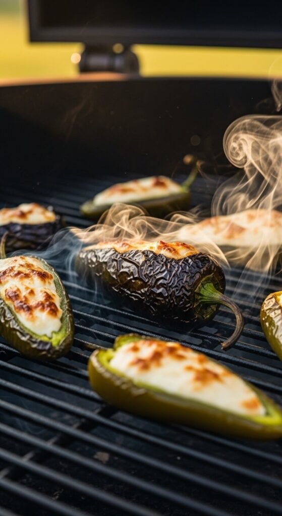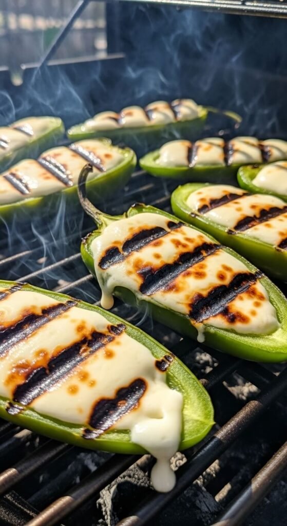 Grilling jalapeño poppers adds a smoky char you just can’t get from an oven. Place filled halves directly on a medium-hot grill, cut side up. Close the lid and cook for 10–12 minutes. The skin blisters slightly and the filling melts perfectly. No need for foil or a grill pan. If you’re already grilling burgers or chicken, toss these on the side. They soak up that outdoor smoke and taste like something you’d pay restaurant prices for.