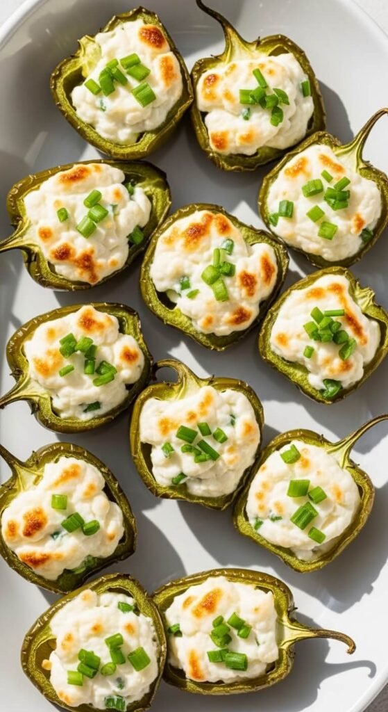 Fresh chives stirred into cream cheese add a mild onion flavor that works really well with jalapeños. This is a simple twist that looks great and costs almost nothing extra. Chives are cheap at the grocery store or easy to grow in a pot on a windowsill. Mix them generously into the cream cheese before stuffing. These look elegant enough for a dinner party but are easy enough for a weeknight snack. Light, creamy, and just a little herby.
