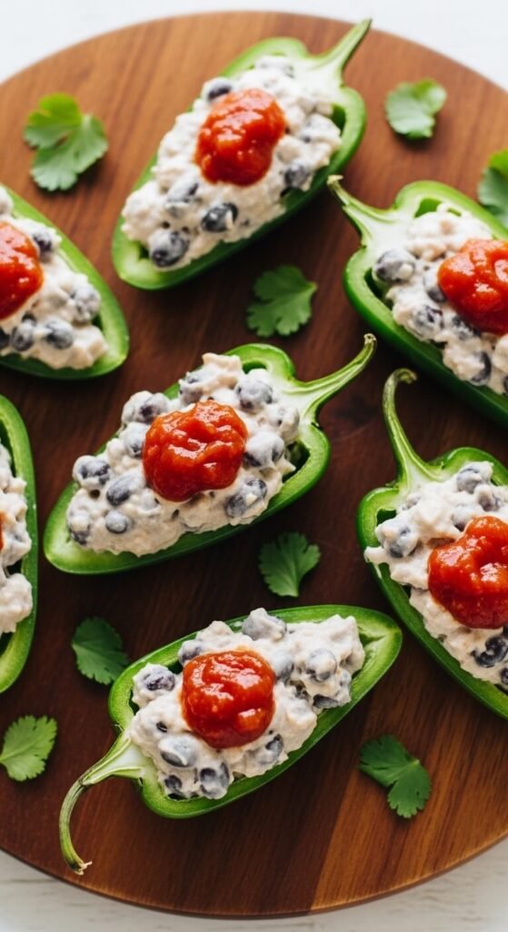 Mash some canned black beans and mix them into cream cheese for a filling that’s creamy, hearty, and budget-friendly. Black beans add texture and protein. A single can of black beans costs under a dollar and fills a lot of poppers. Season with cumin and lime juice. These work great as a vegetarian option that doesn’t feel like a compromise. Top with a tiny spoonful of salsa or a slice of avocado after baking.