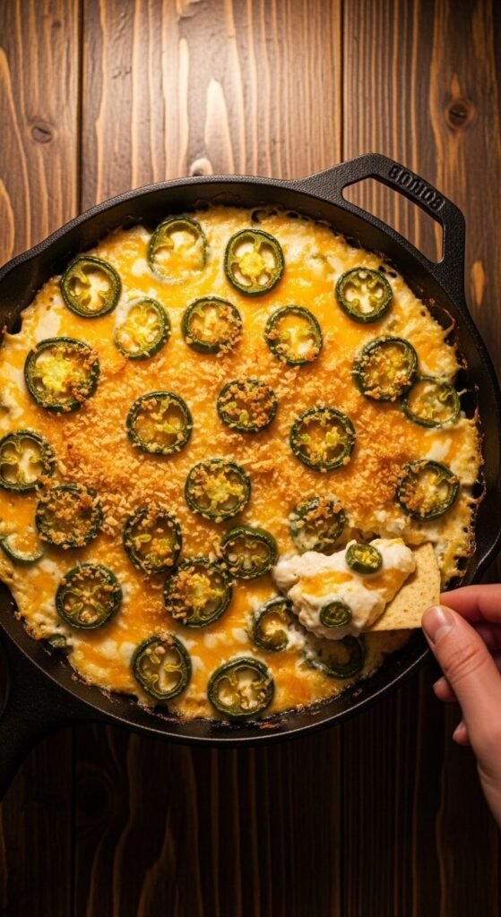 Can’t be bothered to halve and stuff 20 peppers? Make a jalapeño popper dip instead. Mix cream cheese, shredded cheddar, and diced jalapeños in a baking dish. Top with breadcrumbs. Bake at 375°F for 20 minutes until bubbly and golden. Serve with tortilla chips or crackers. All the flavor, half the prep time. This is the move when you’re feeding a bigger crowd or just want something simple to throw together fast.