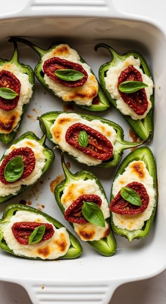 Fill jalapeños with cream cheese and a spoonful of marinara, top with shredded mozzarella and mini pepperoni, and bake until bubbly. These taste like pizza bites with a kick. Kids love them too, especially if you use mild peppers. Keep a jar of marinara and a bag of mozzarella in the fridge for a quick version anytime. These are also fun to make with leftover pizza toppings — mushrooms, olives, or bell peppers all work great.