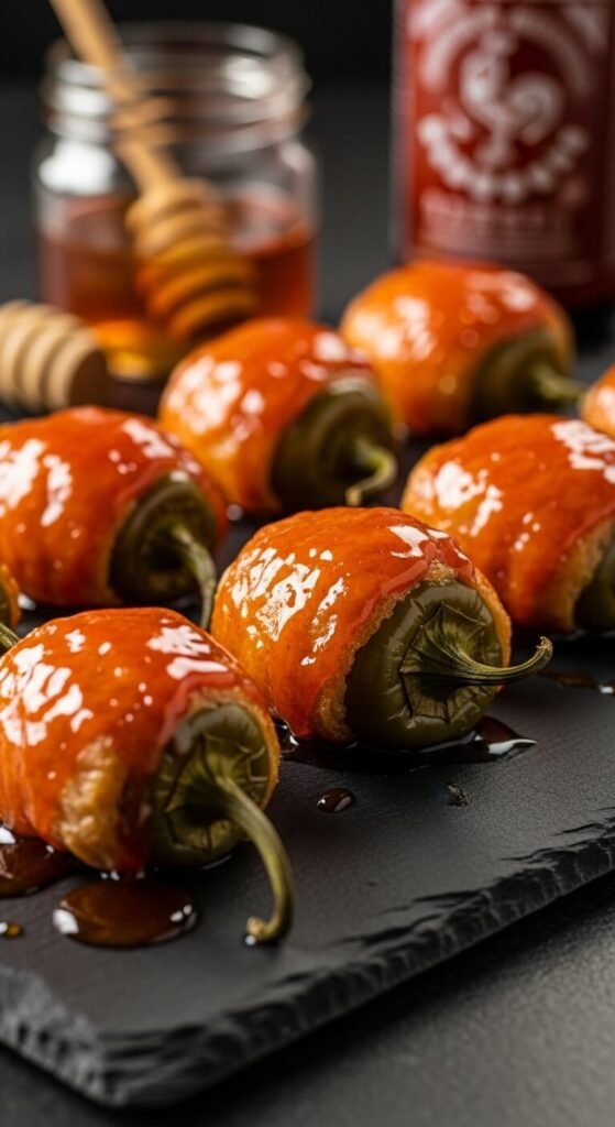 After baking your classic cream cheese poppers, drizzle them with a mix of honey and sriracha (about 2:1 ratio). The honey caramelizes slightly on the hot pepper and creates a sticky, spicy-sweet glaze. It takes 30 seconds to make and completely changes the experience. This is the move when you want to impress someone without doing any extra cooking. Use whatever sriracha you have in the fridge. This glaze works on bacon-wrapped versions too.