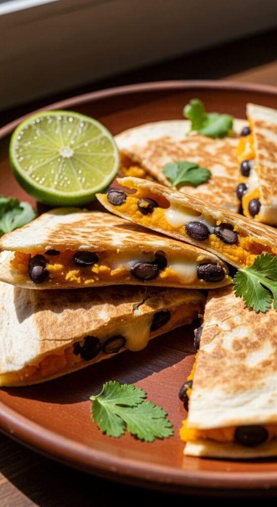 Roast a sweet potato, mash it lightly, and spread it inside a tortilla with black beans and pepper jack cheese. The sweetness of the potato balances the spice of the cheese perfectly. Cook until golden and slice into wedges. This is filling, satisfying, and naturally meatless. Budget tip: sweet potatoes are one of the cheapest vegetables in any grocery store. Buy them in a small bag for even better value. You can roast a few at once and refrigerate them, then assemble quesadillas throughout the week.