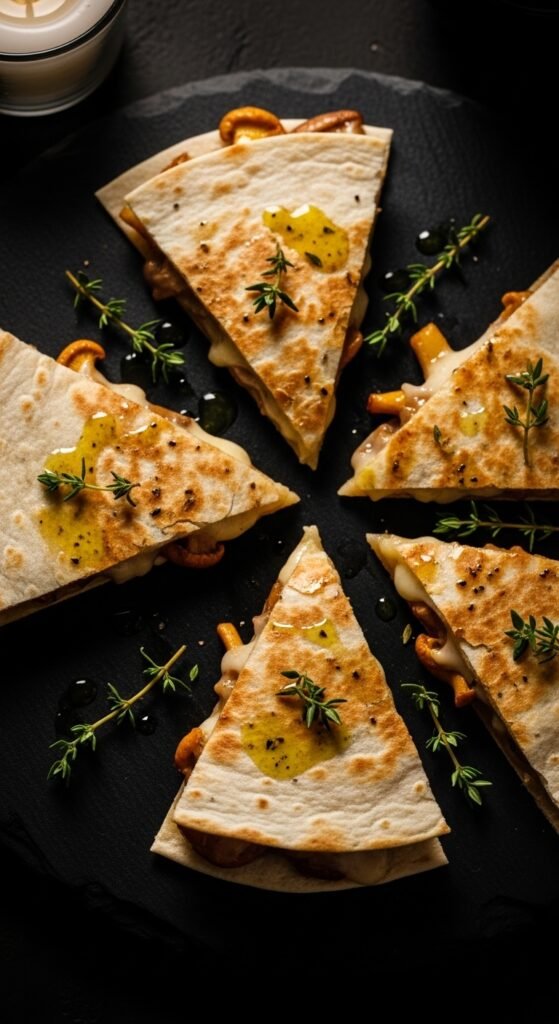 26. Mushroom and Truffle Oil Quesadilla Wedges