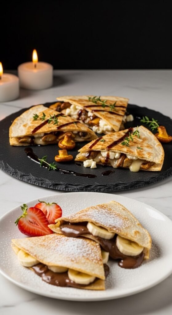 End the party on a sweet note. Spread Nutella on one half of a flour tortilla, layer sliced banana on top, fold, and cook on medium-low until golden and warm. The Nutella melts into the banana and the tortilla gets perfectly crispy. Slice into triangles and dust with powdered sugar. Budget tip: Nutella is widely available and a small jar goes a long way. Bananas are one of the cheapest fruits in any store. This dessert quesadilla takes under five minutes to make and always gets the biggest reaction of the night.