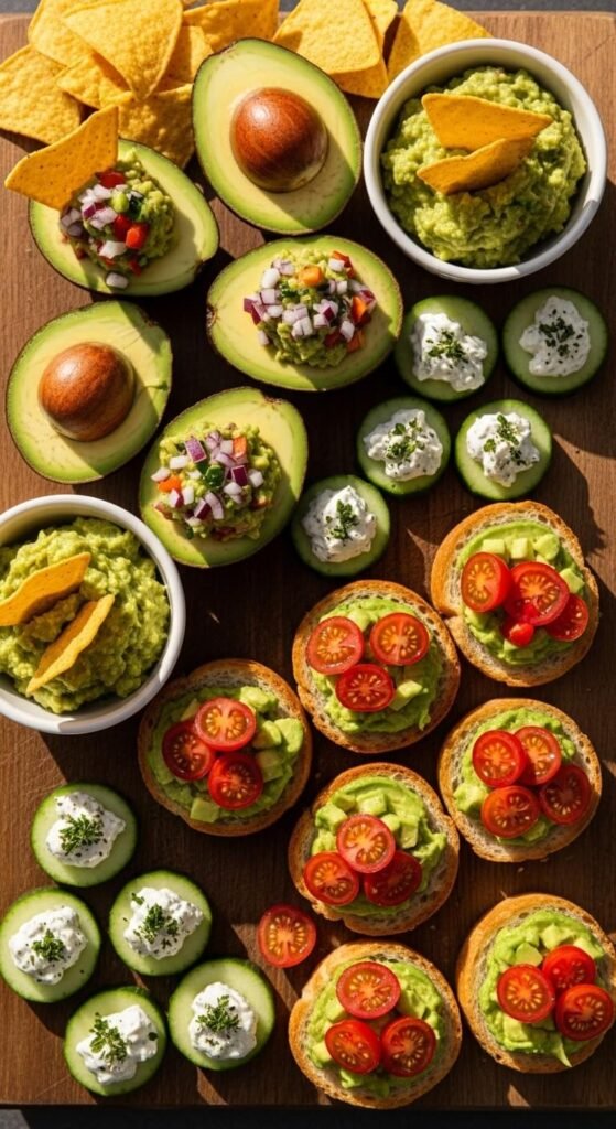 Guacamole is the foundation of every great avocado appetizer spread. Mash two ripe avocados with lime juice, salt, diced red onion, and chopped cilantro. Add diced tomato and a pinch of cumin for extra depth. Toasted pita chips are a wallet-friendly swap for expensive store-bought chips — slice pita bread into triangles, brush with olive oil, and bake at 375°F for 8 minutes. The whole thing costs under $5 and feeds a crowd. Simple, reliable, and always the first thing to disappear.
