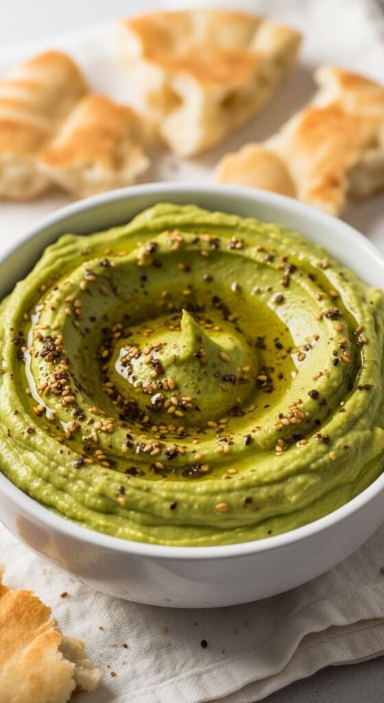 Whipped avocado dip is smoother, airier, and more elegant than standard guacamole. Blend a ripe avocado with Greek yogurt, lemon juice, garlic, and olive oil until light and almost mousse-like in texture. Season with salt and za’atar, an herb blend available at most international grocery stores for just a few dollars. The flavors pair exceptionally well with the avocado base. Serve with torn warm pita. This dip stores up to 24 hours in the fridge — just press plastic wrap directly onto the surface before covering to preserve the color.