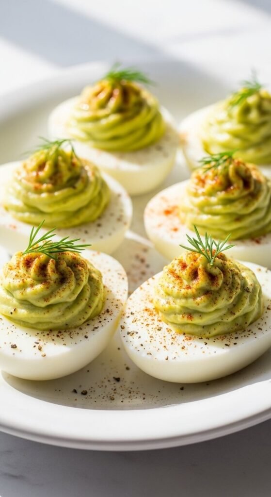 This one surprises guests every single time. Replace the mayo in standard deviled eggs with mashed ripe avocado. Mix the yolks with avocado, a squeeze of lemon, Dijon mustard, and a pinch of salt until smooth. Pipe or spoon the mixture back into the whites and dust with smoked paprika. Add a thin jalapeño slice on top if you want a little heat. These take under 15 minutes and look far more impressive than the effort involved. Make them the same day for the best color.