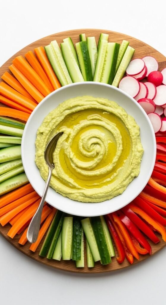 Two crowd favorites merge into one outstanding dip. Blend canned chickpeas, one ripe avocado, garlic, lemon juice, tahini, and olive oil until completely silky. Season with cumin and salt. The avocado makes the texture even creamier than regular hummus. Serve with raw vegetables instead of chips for a lighter appetizer that still feels indulgent and satisfying. A full batch costs about $3 and serves eight people. Press plastic wrap directly onto the surface before refrigerating to keep the color bright and prevent browning.