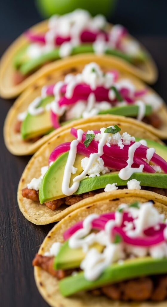 Mini tacos are a party staple that everyone gravitates toward. Warm small corn tortillas in a dry skillet until soft. Fill with sliced avocado, pickled red onion, and crumbled cotija cheese. Add a drizzle of sour cream or hot sauce to finish. Pickling red onions takes only 20 minutes — submerge thin slices in red wine vinegar, a pinch of sugar, and salt. These are budget-friendly, endlessly customizable, and easy to eat standing up. Set out the fillings separately and let guests build their own for a fun, interactive touch.