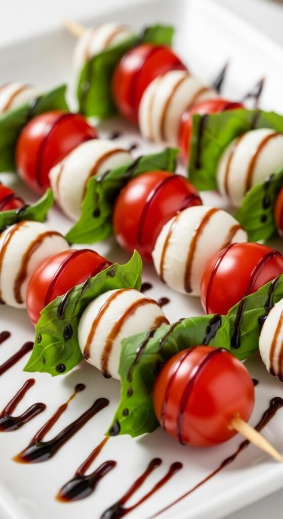 Drizzle with balsamic glaze right before serving. They look impressive but take almost no effort. The fresh ingredients stay crisp and flavorful for hours.