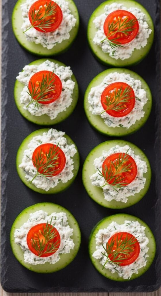 Add cherry tomatoes, smoked salmon, or everything bagel seasoning on top. Cover with plastic wrap and chill. They stay crisp and refreshing.
