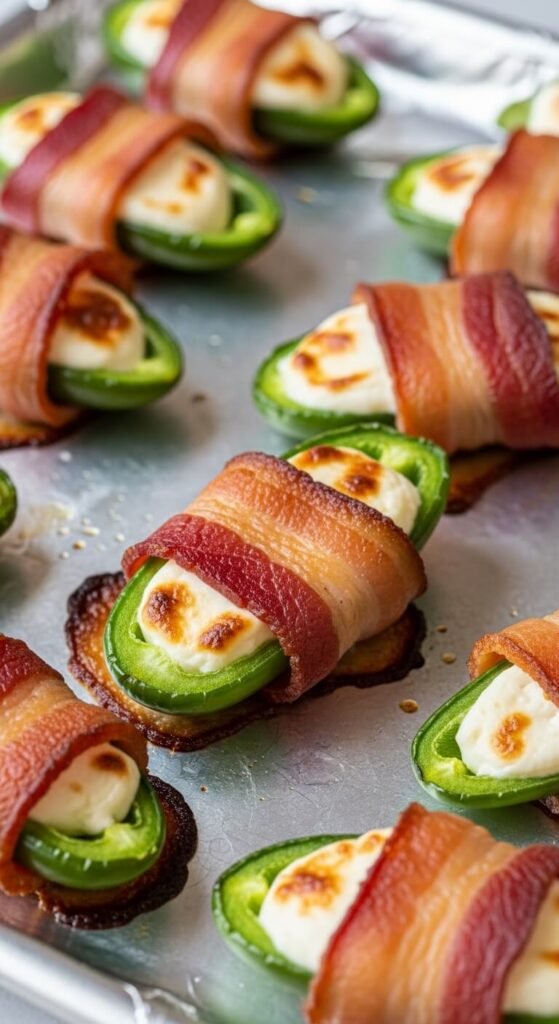 Bake from frozen until the bacon crisps up. The heat level mellows during cooking, so even non-spicy-food lovers enjoy them. The cream cheese cools things down too.