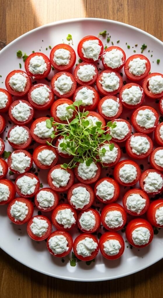 Buy cherry tomatoes in bulk when they’re cheap. Use a small spoon or melon baller to scoop the insides.