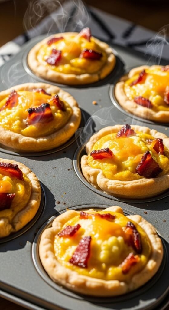 Use whatever vegetables and cheese you have on hand. Frozen pie crust cut into circles makes easy shells.