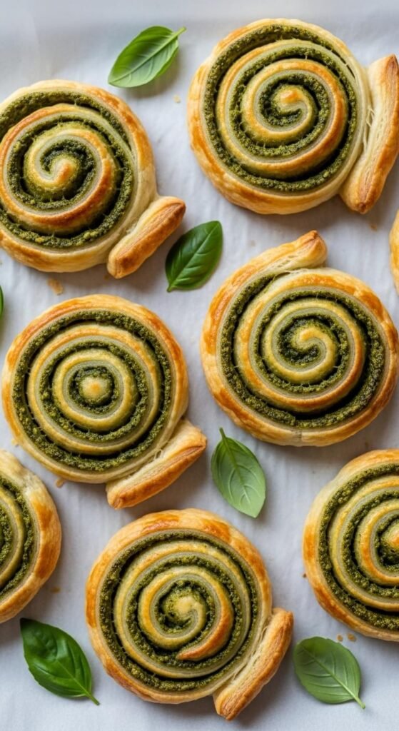 Bake from frozen until golden and puffy. The pesto flavor intensifies while the pastry gets crispy and buttery. These are vegetarian by default but taste rich and satisfying.